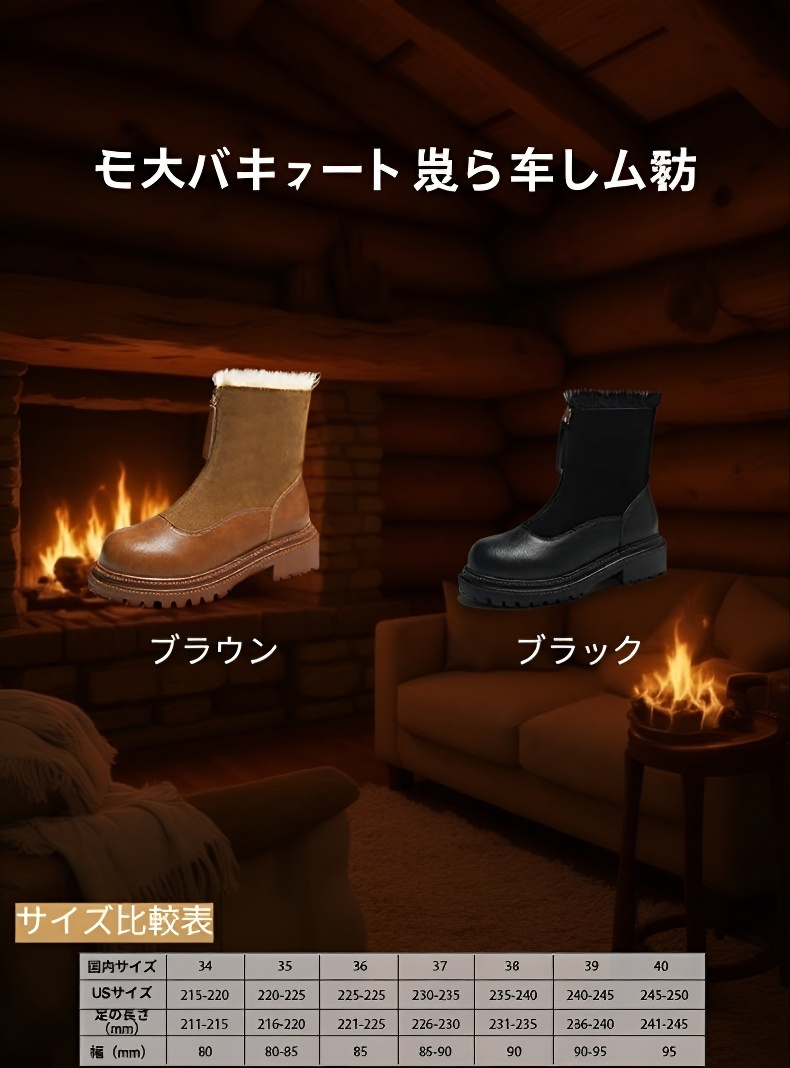 レトロ厚底裏起毛マーティンブーツ レディース 丸いつま先ファッションブーツ