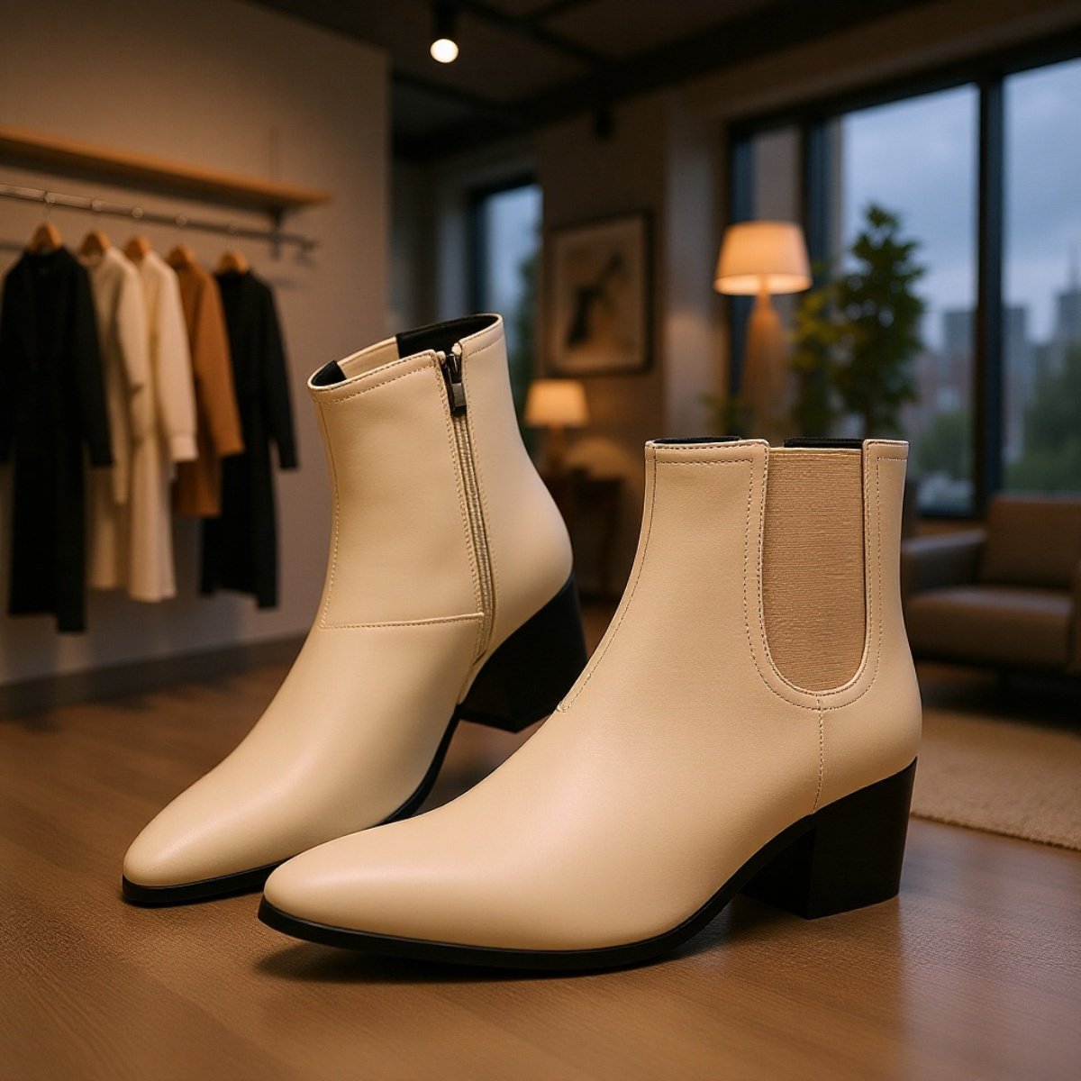 メンズ厚底チェルシーブーツ ファッションハイヒールショートブーツ スクエアトゥハイカットブーツ